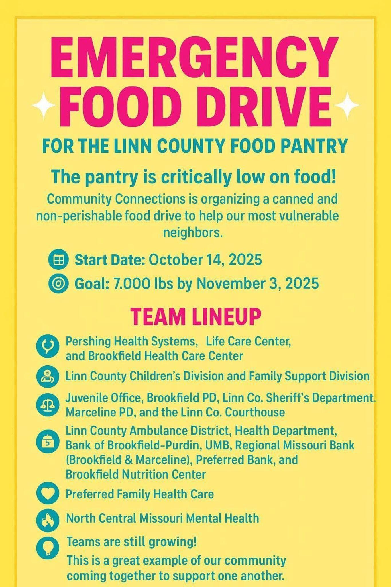 BROOKFIELD – A spirited — and much-needed — competition is underway in Brookfield, where the city’s police and fire departments are going head-to-head in a friendly “Emergency Food Drive Challenge” to support the Linn County Food Pantry.